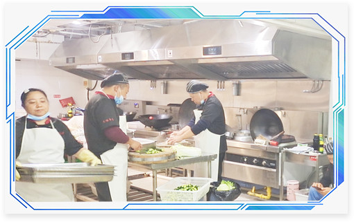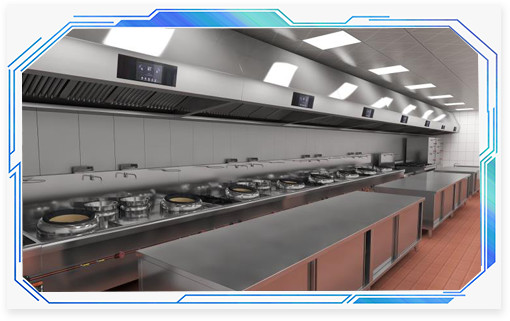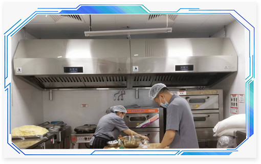 北京西平莊百姓大食堂為了支持響應(yīng)國家“藍(lán)天保衛(wèi)戰(zhàn)”政策,整個大食堂都采用的這種壹指藍(lán)環(huán)保油煙機設(shè)備,不僅不用向外部排放油煙,還給廚房人員更好的工作環(huán)境,更健康的身體。